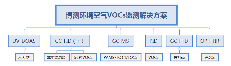 博測環境擁有完整的VOCs在線監測產品體系,滿足不同行業不同場景的需求,包括環境空氣中上百種VOCs自動監測系統工業園區有機硫化物自動監測系統開放光程苯系物自動監測系統網格化VOCs自動監測系統,以及固定污染源煙囪煙道中甲烷/非甲烷總烴在線監測系統VOCs特征因子在線監測系統,等等。