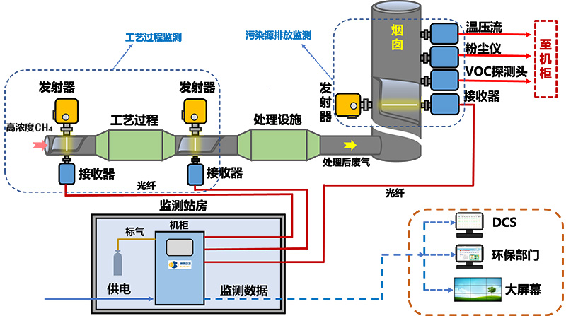 工業中,對煙囪和輸氣管道的甲烷監測非常重要,兩種監測都是為了提高生產效率和控制排放。博測環境采用的差分吸收光譜法(DOAS)系統是一條開放式光程,無須接觸被監測氣體的監測系統,為環保監測部門和用戶提供了穩定、可靠的解決方案。