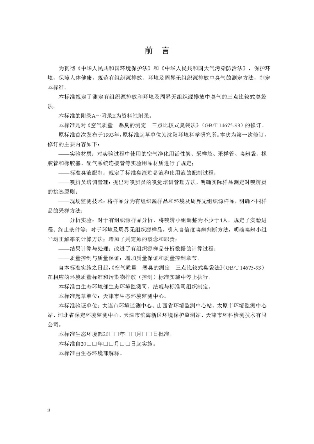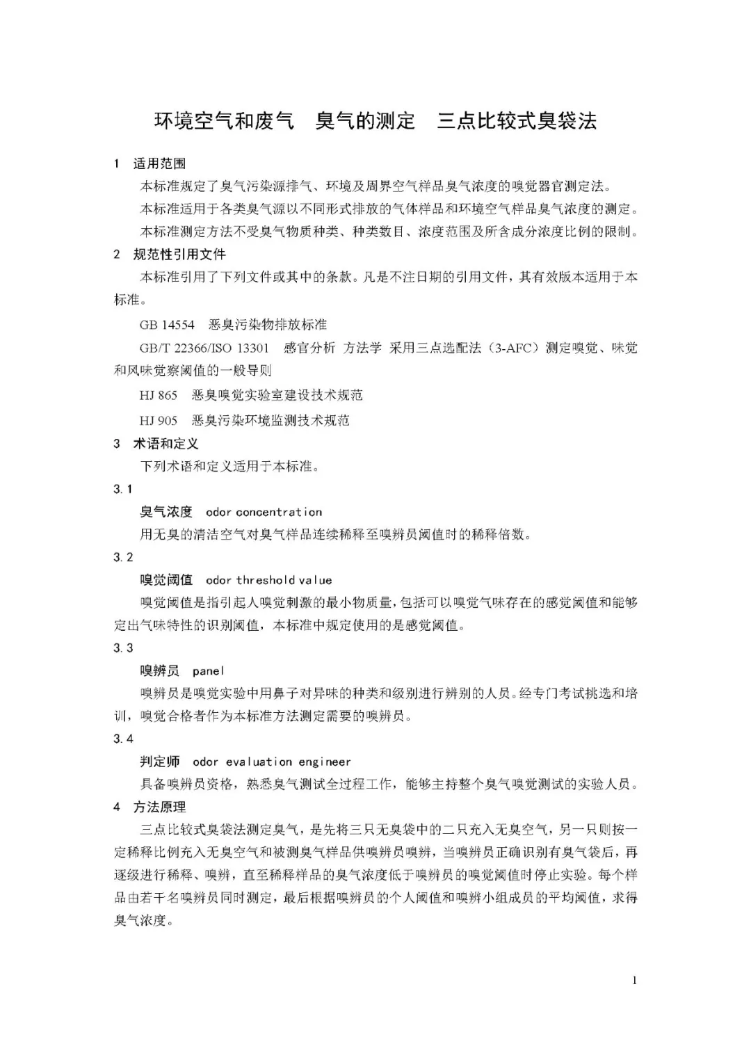 環(huán)境空氣和廢氣 臭氣的測定 三點比較式臭袋法(征求意見稿)全文如下: